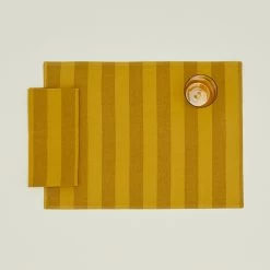 Essential Striped Placemat, Set Of 4 – Mustard/Bronze