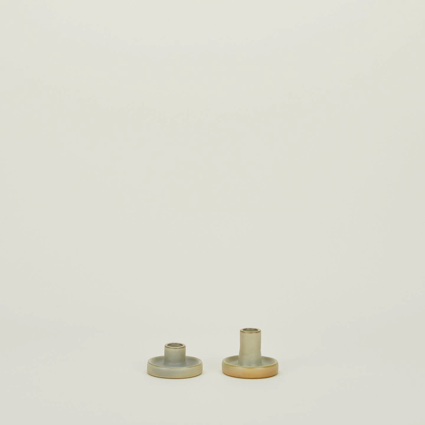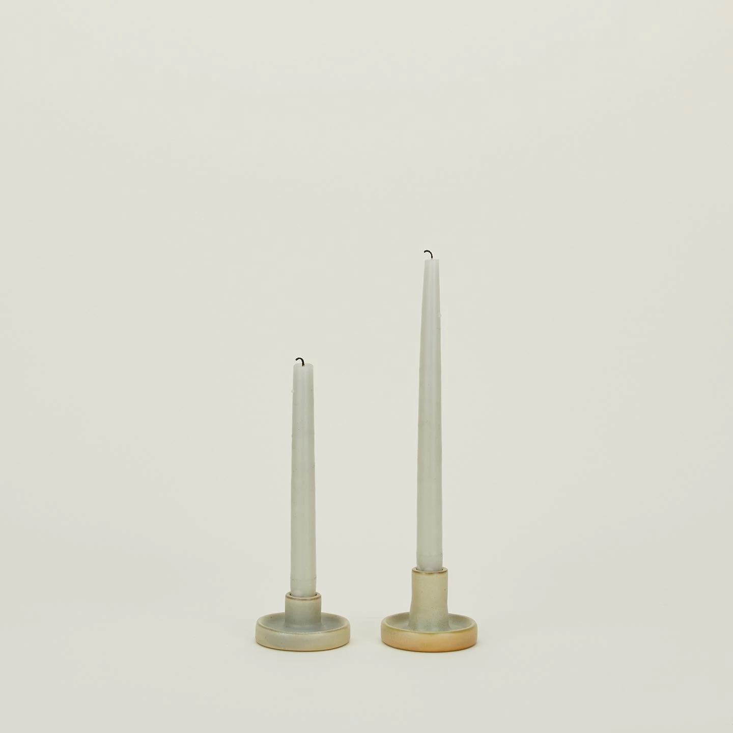 - Set of 2 stoneware taper holders in Cream