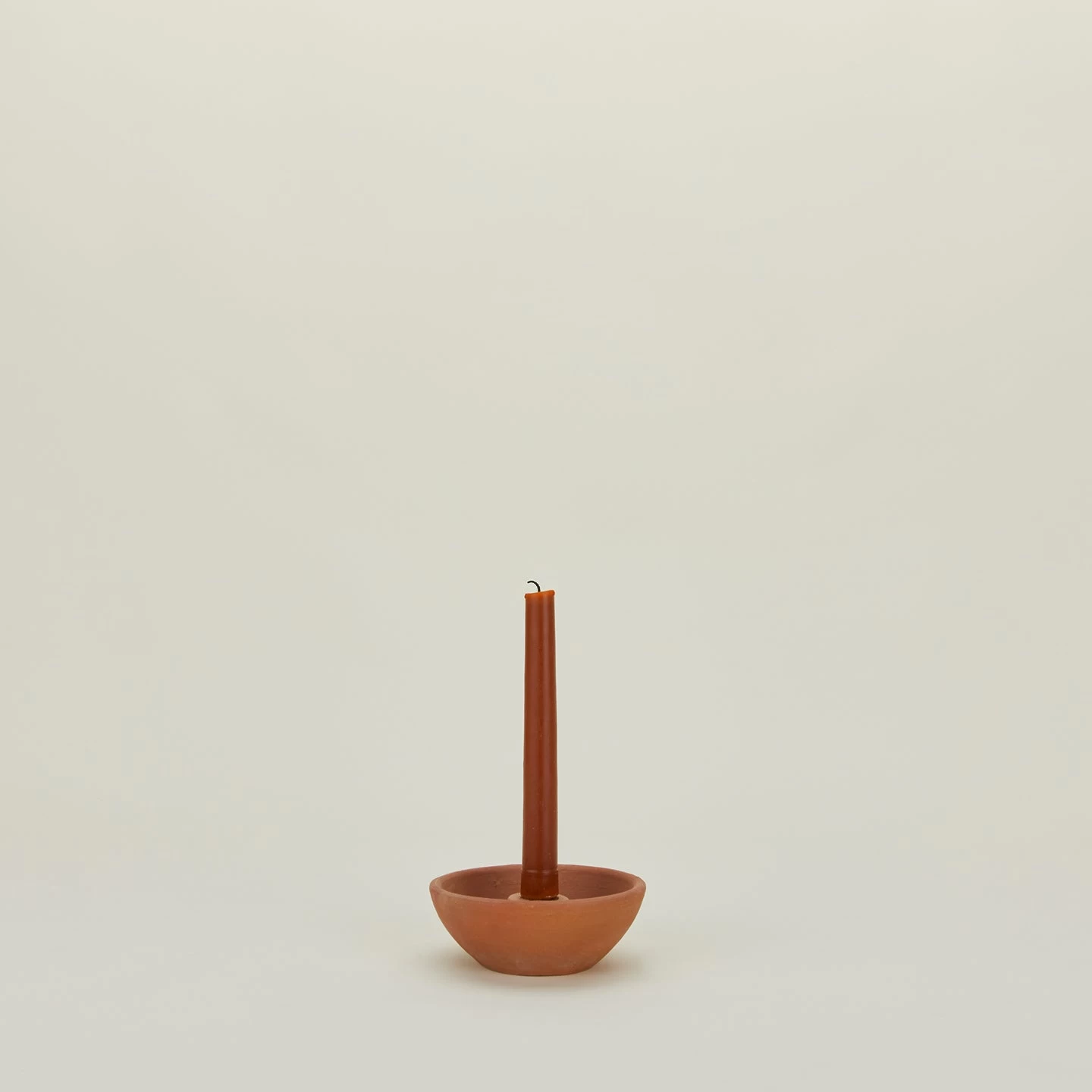 Terracotta taper holder with a trusty bowl base