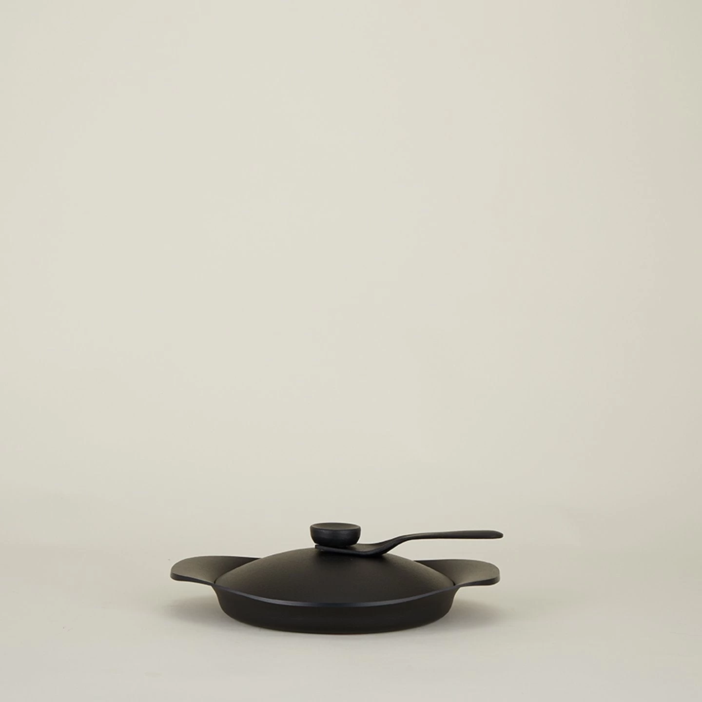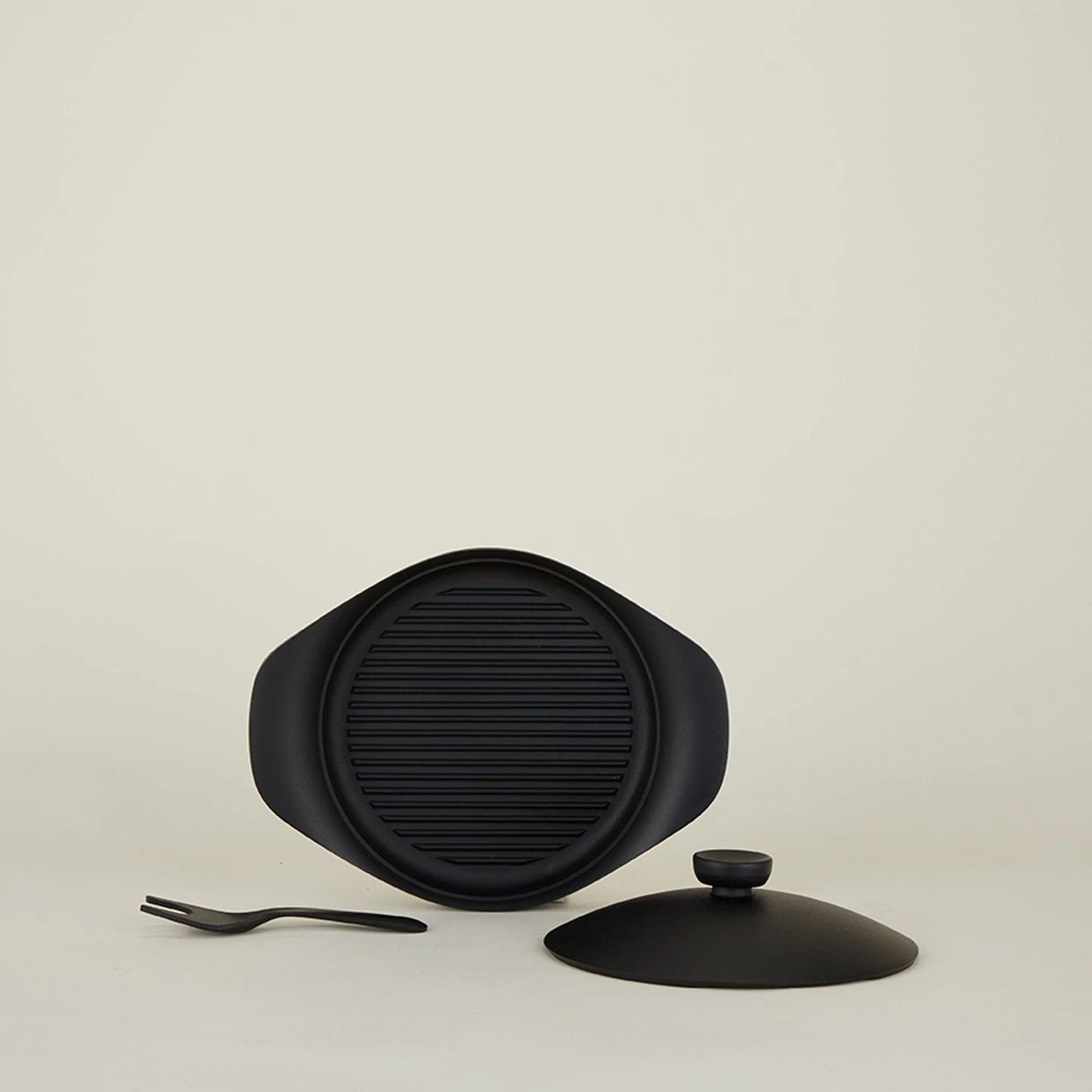 - Curved edges for easy pouring + a cast iron fork for lifting and serving