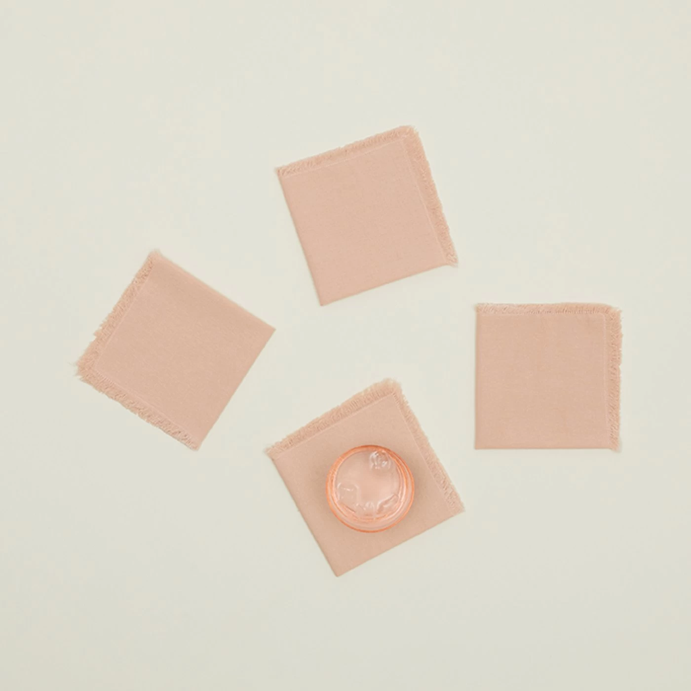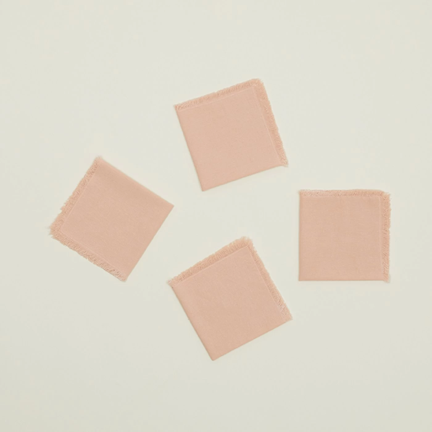 - Hand-dyed cotton cocktail napkins, with a soft fringed edge