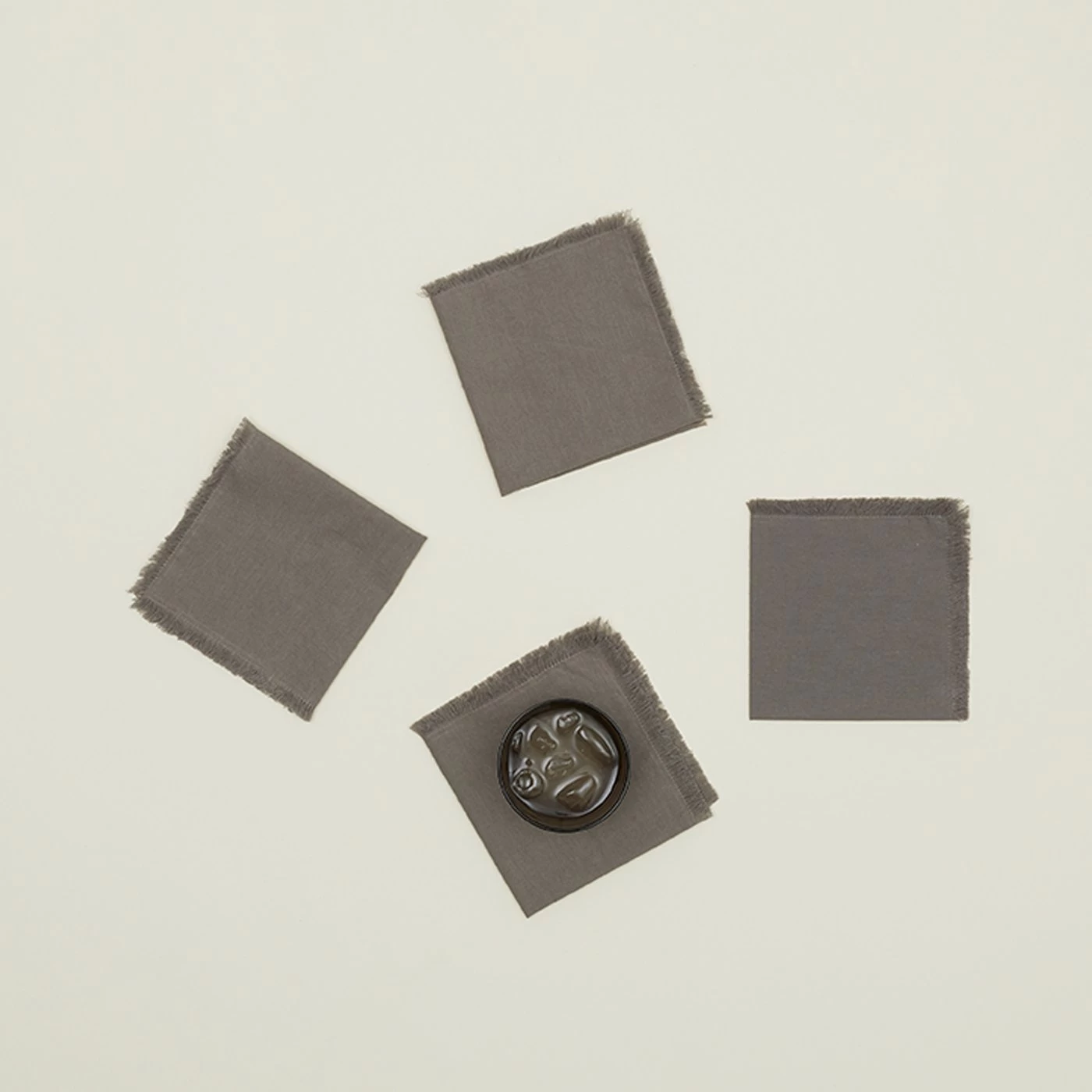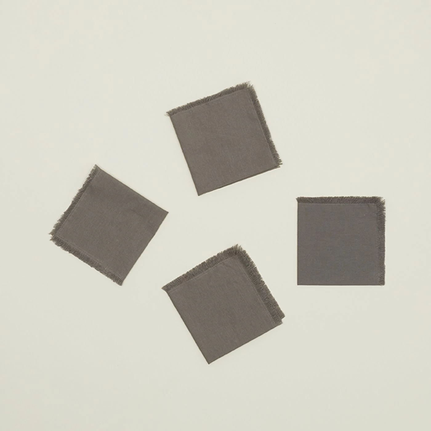 - Hand-dyed cotton cocktail napkins, with a soft fringed edge