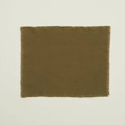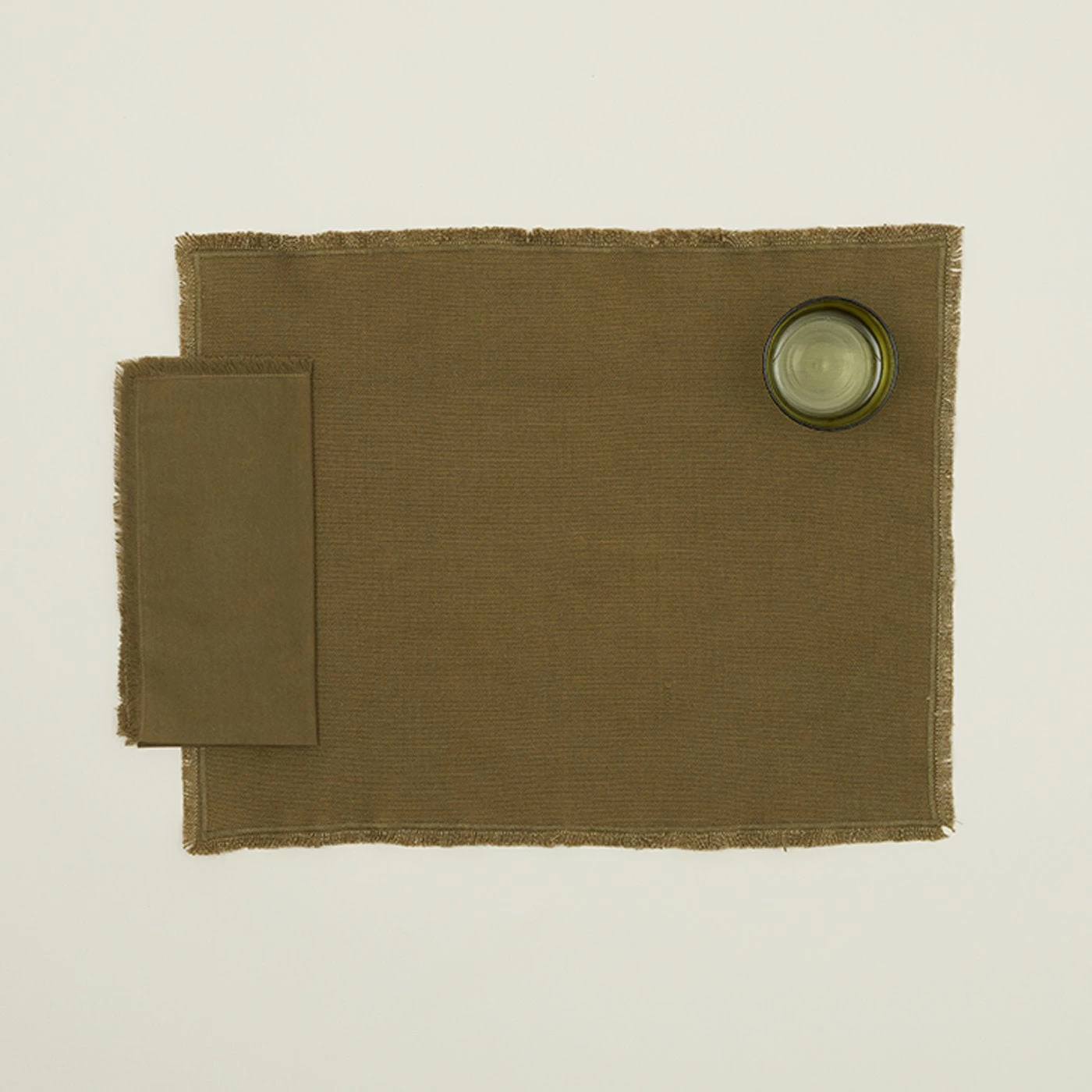 - Hand-dyed cotton dinner placemats, with a soft fringed edge