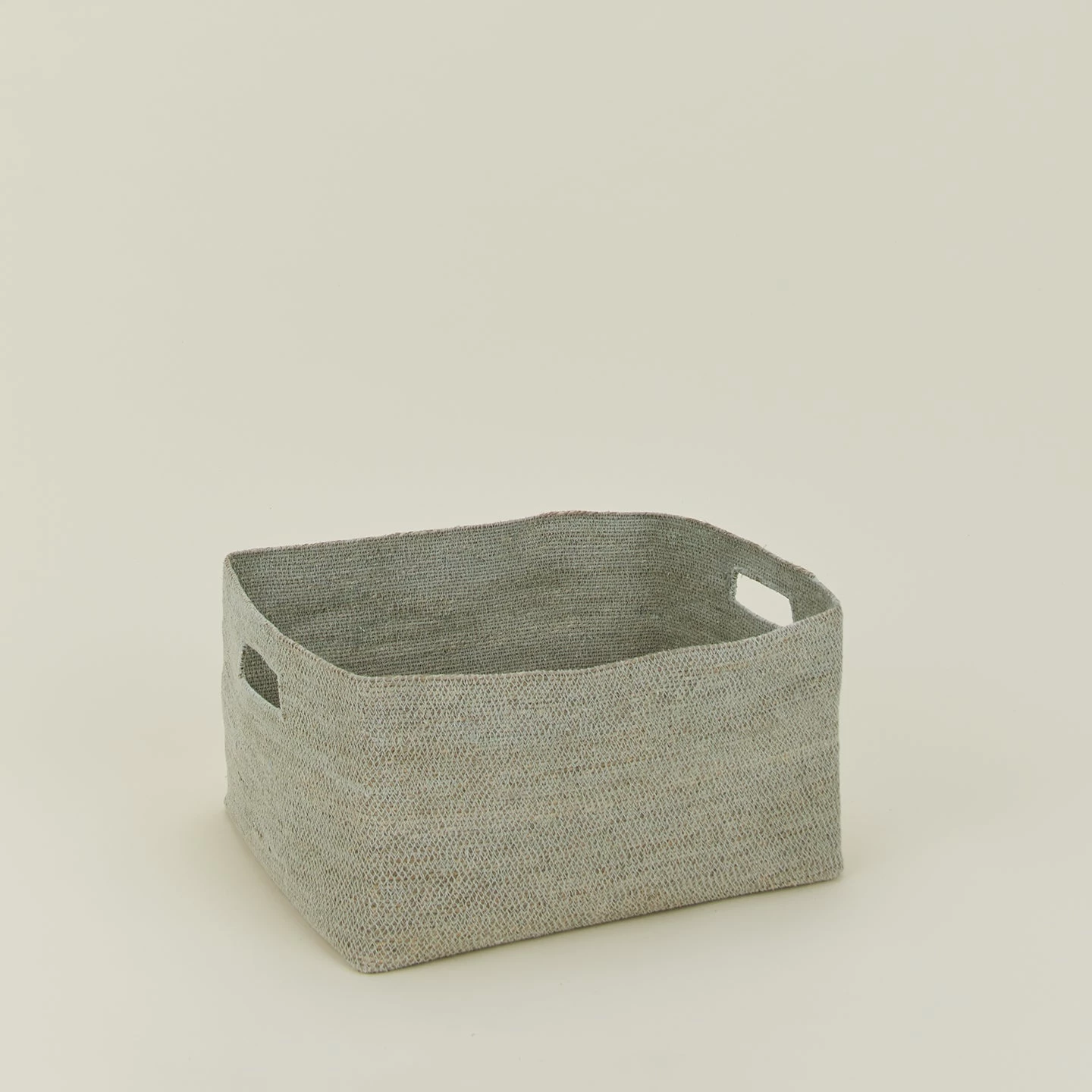 - A handwoven seagrass basket with handles for easy transport