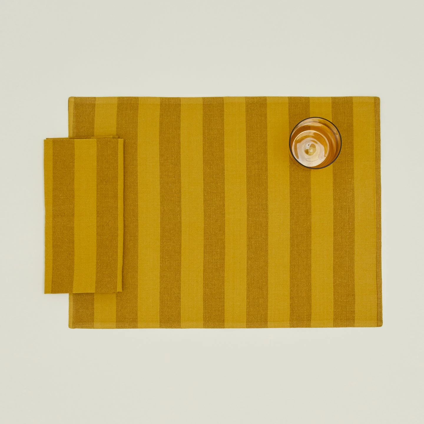 - Set of 4 striped dinner napkins in Mustard/Bronze