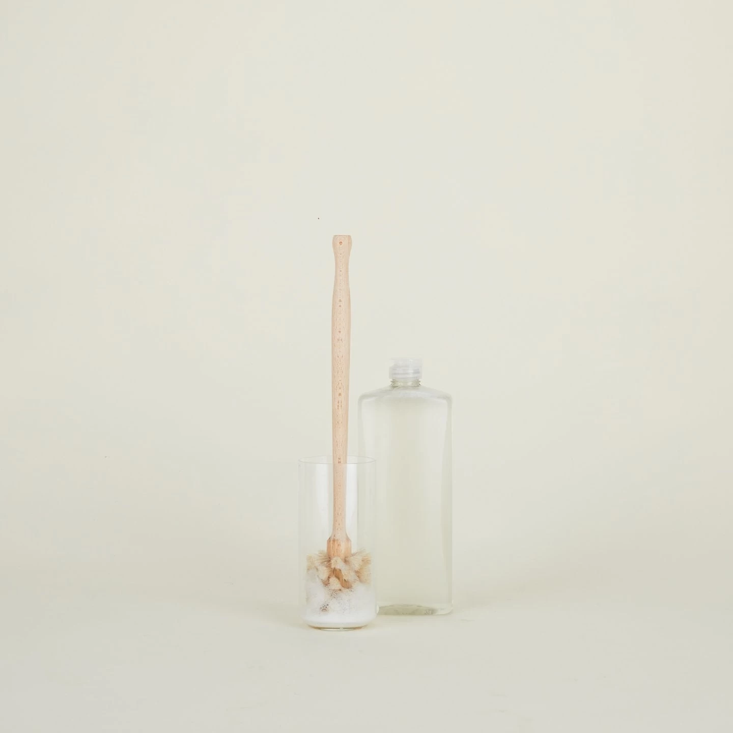 Bristles on all sides + on the bottom let you get down into even the tallest glass