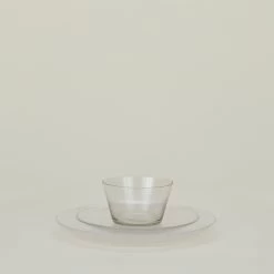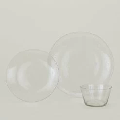 - Handmade + hand blown recycled glass dinner plate in Clear