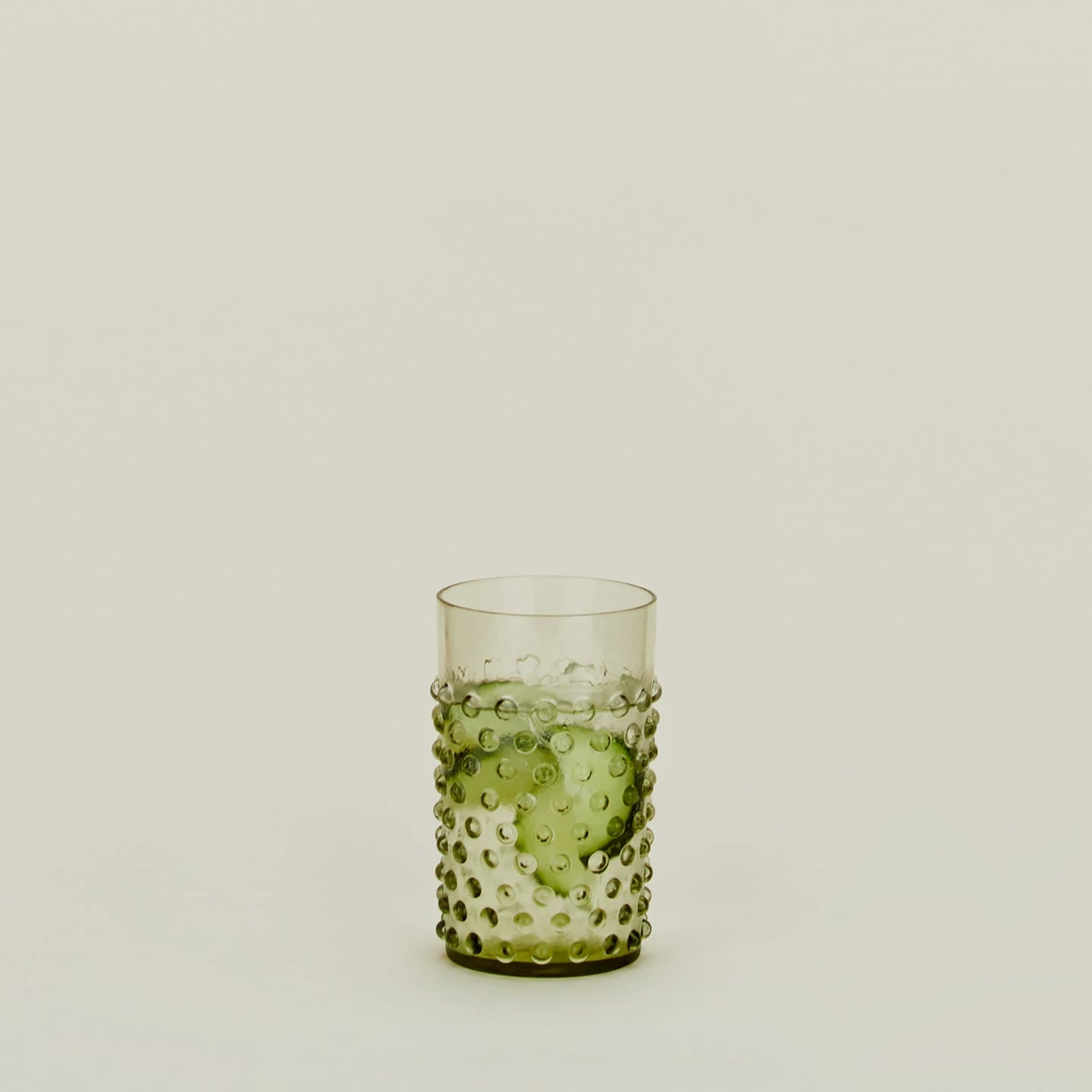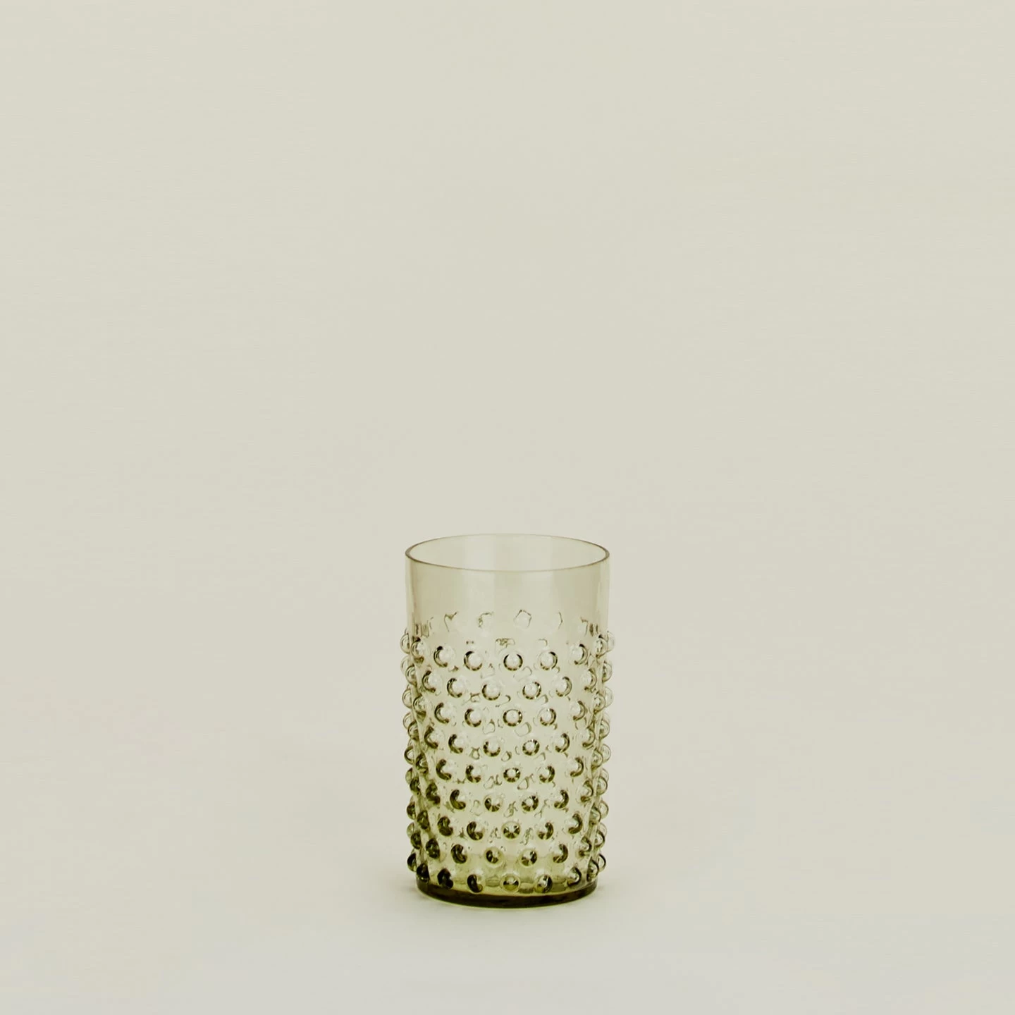 - Olive glass tumbler with a playful hobnail pattern