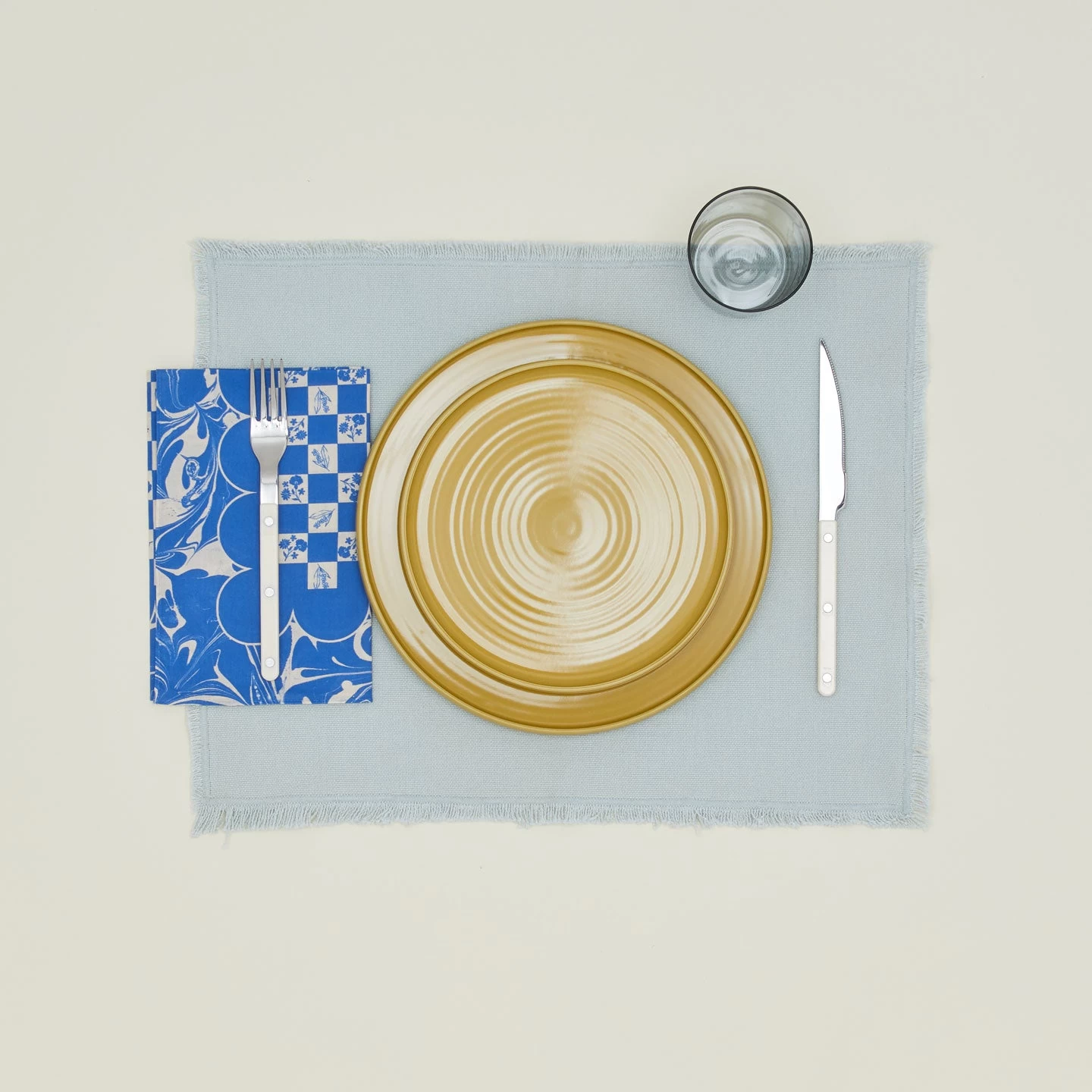 - Set of 2 cotton-hemp blend napkins in Klein Blue