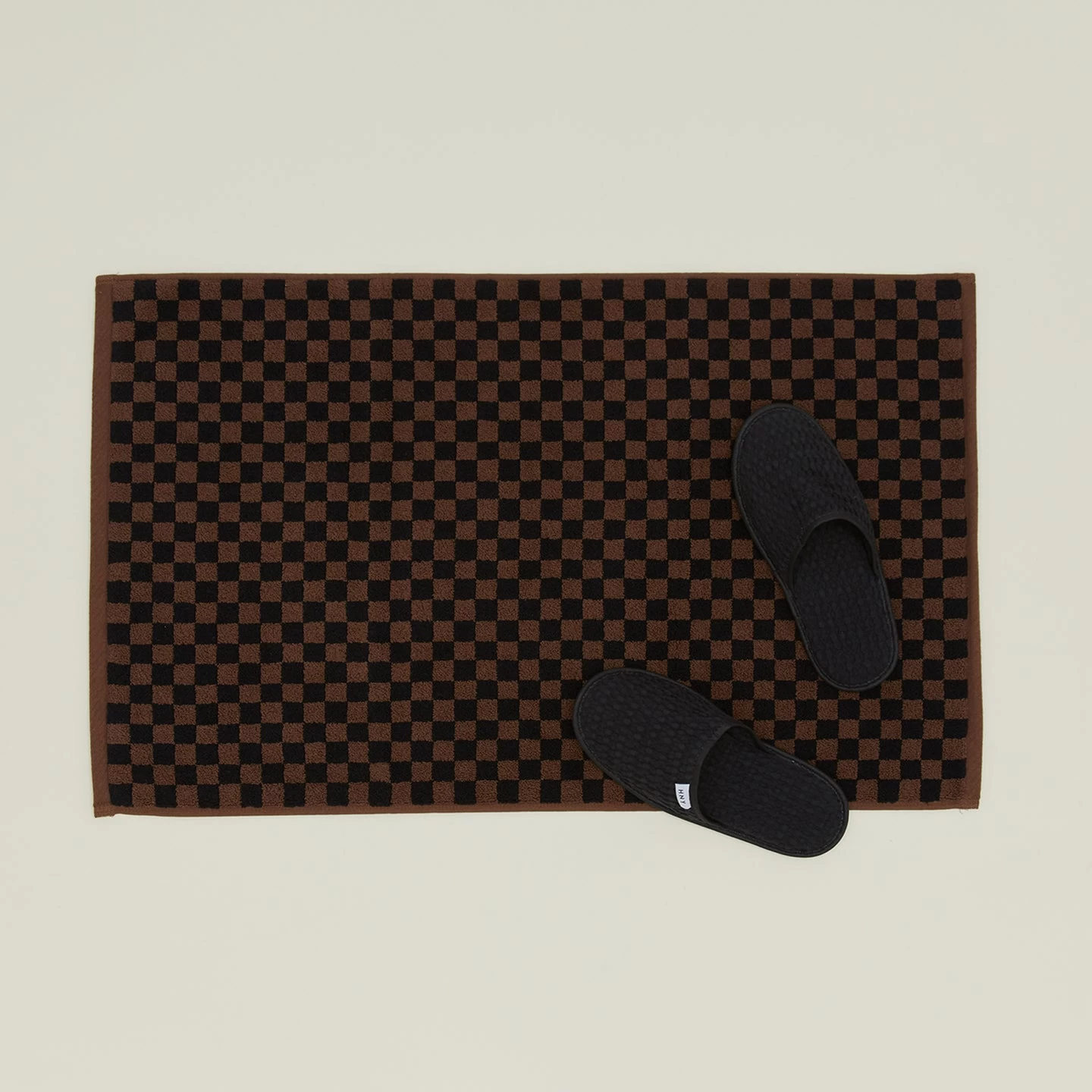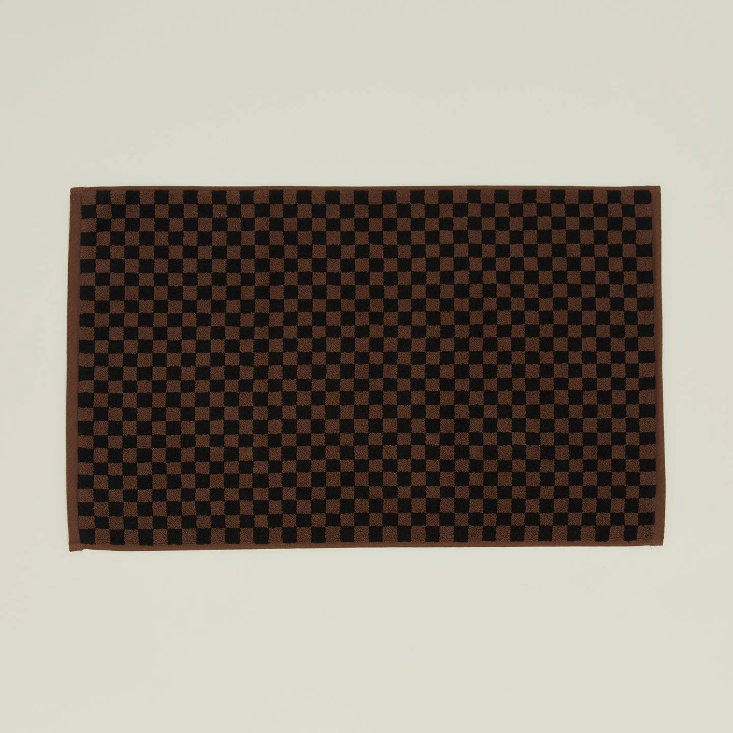 - 100% Organic Cotton bath mat in Brown + Black checkerboard