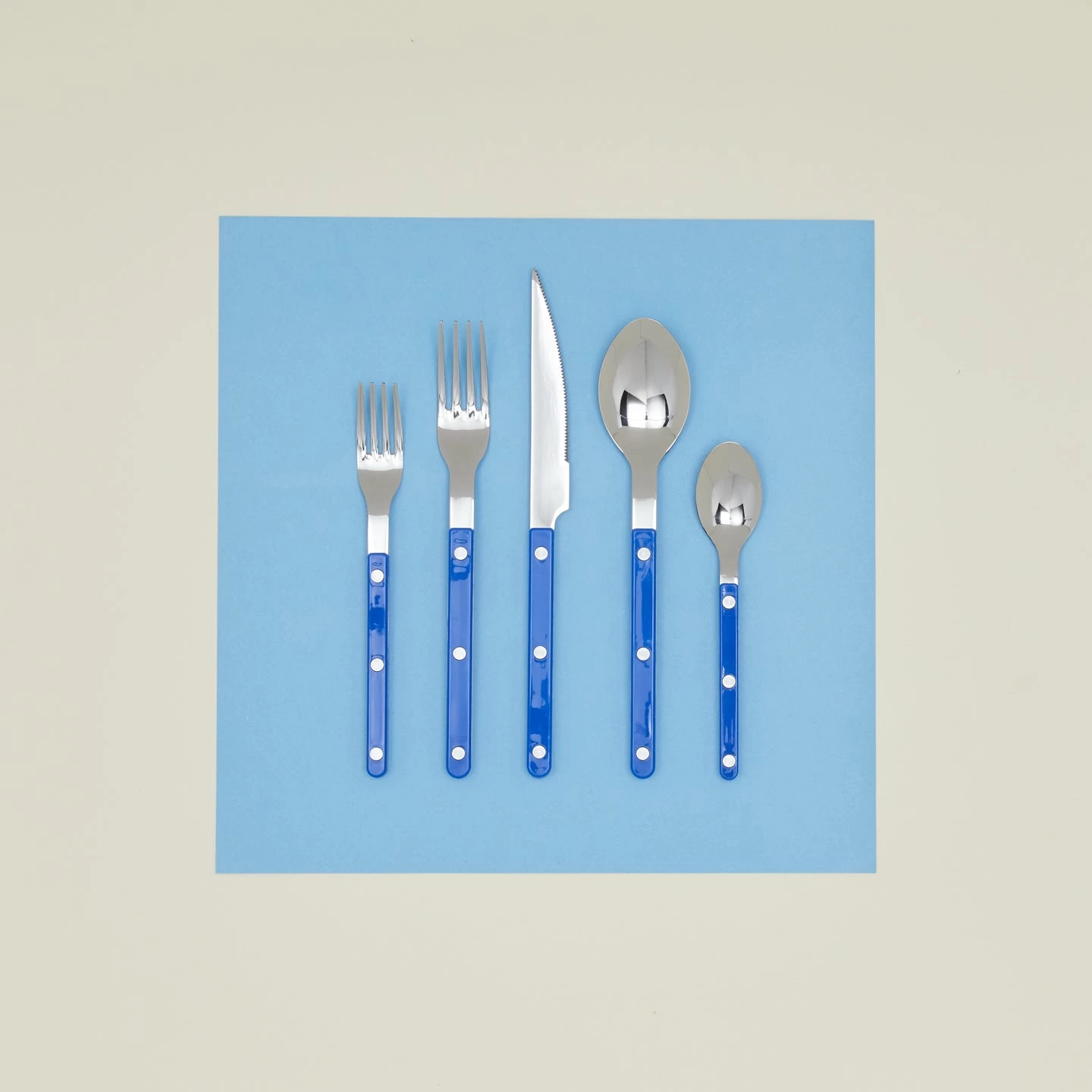 - 5-piece set includes dinner knife, salad + dinner forks, and dinner + dessert spoons