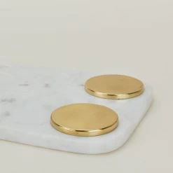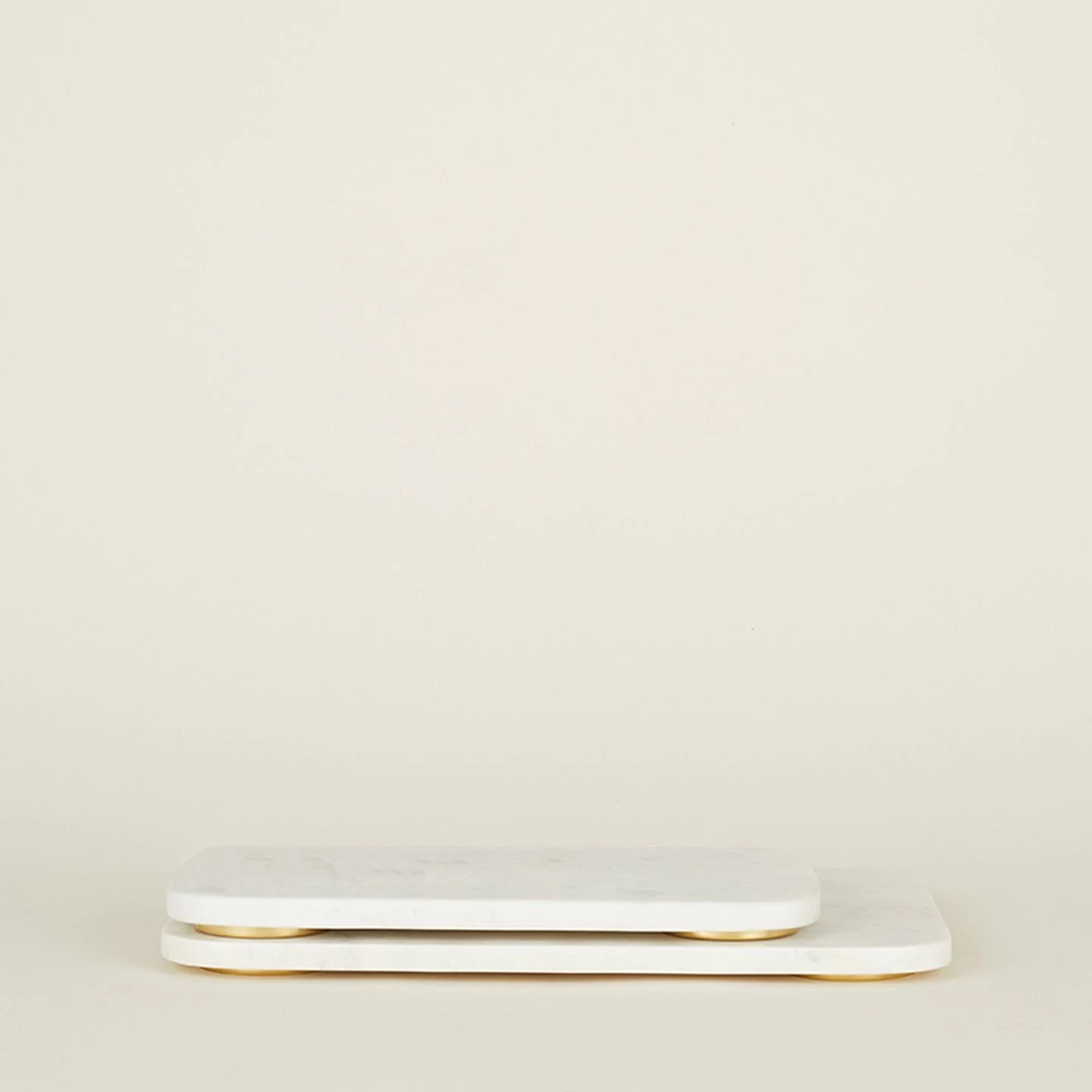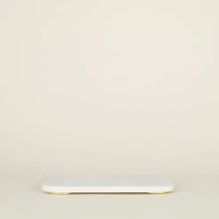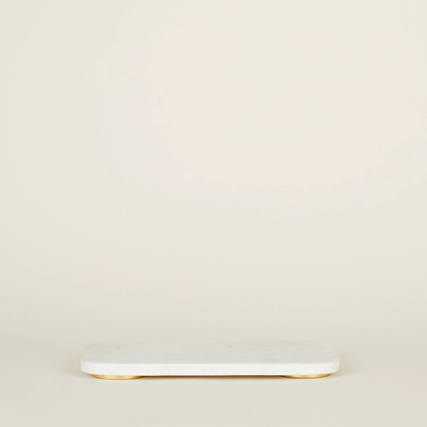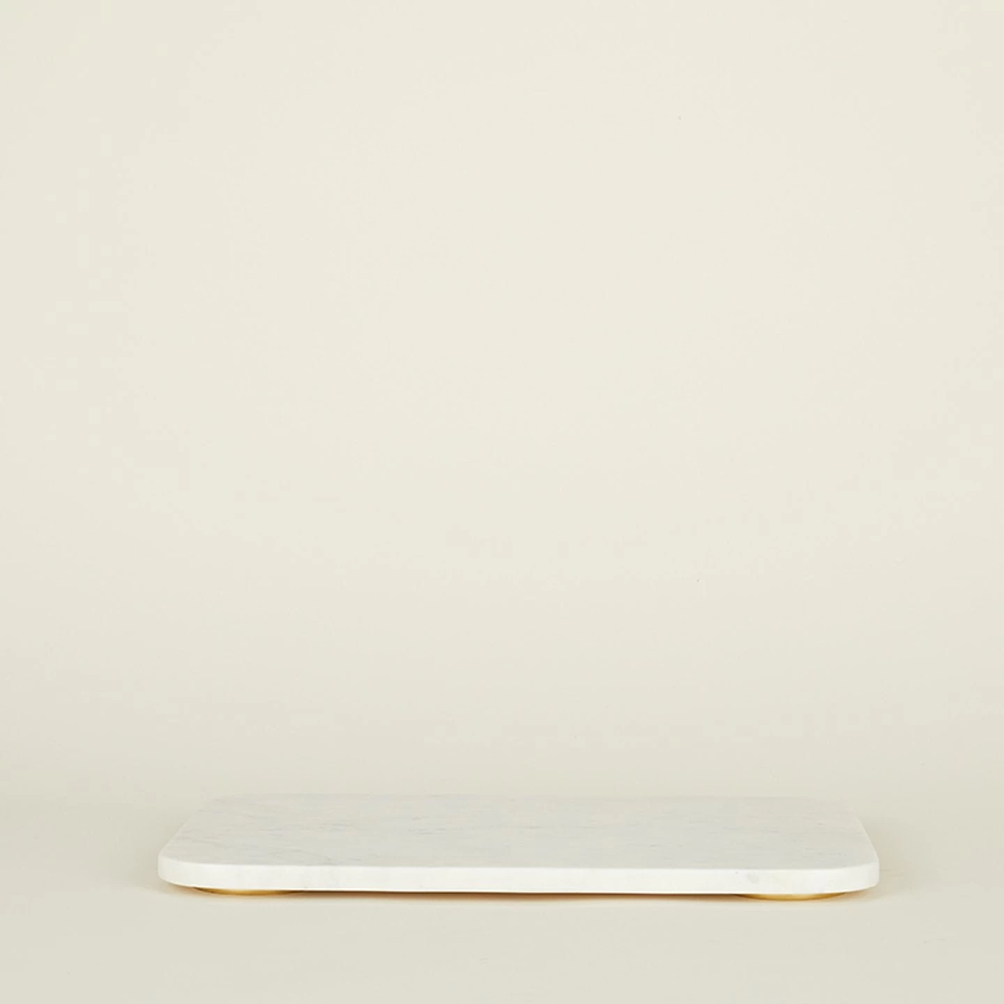 - Constructed of a solid slab of white marble, with rounded corner and circular brass feet
