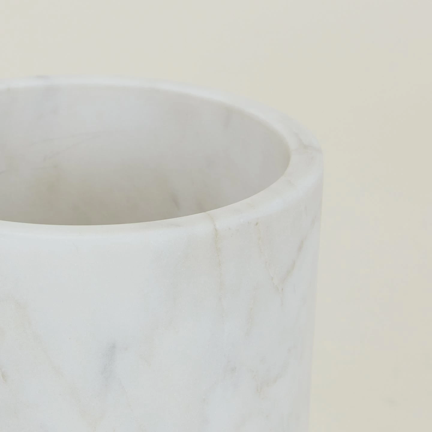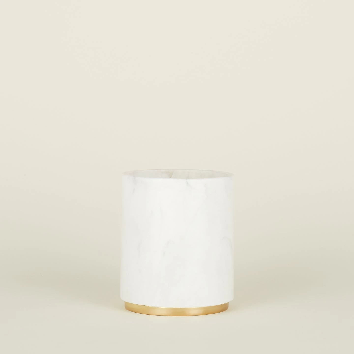 - Hollowed block of white marble, finished with a brass bottom for a bit of shine