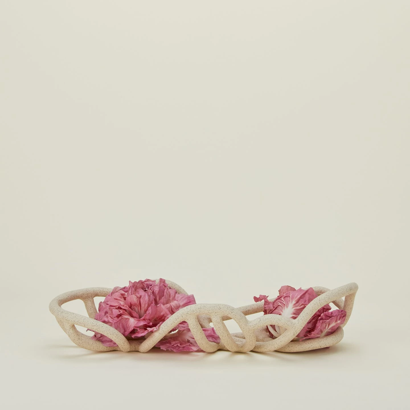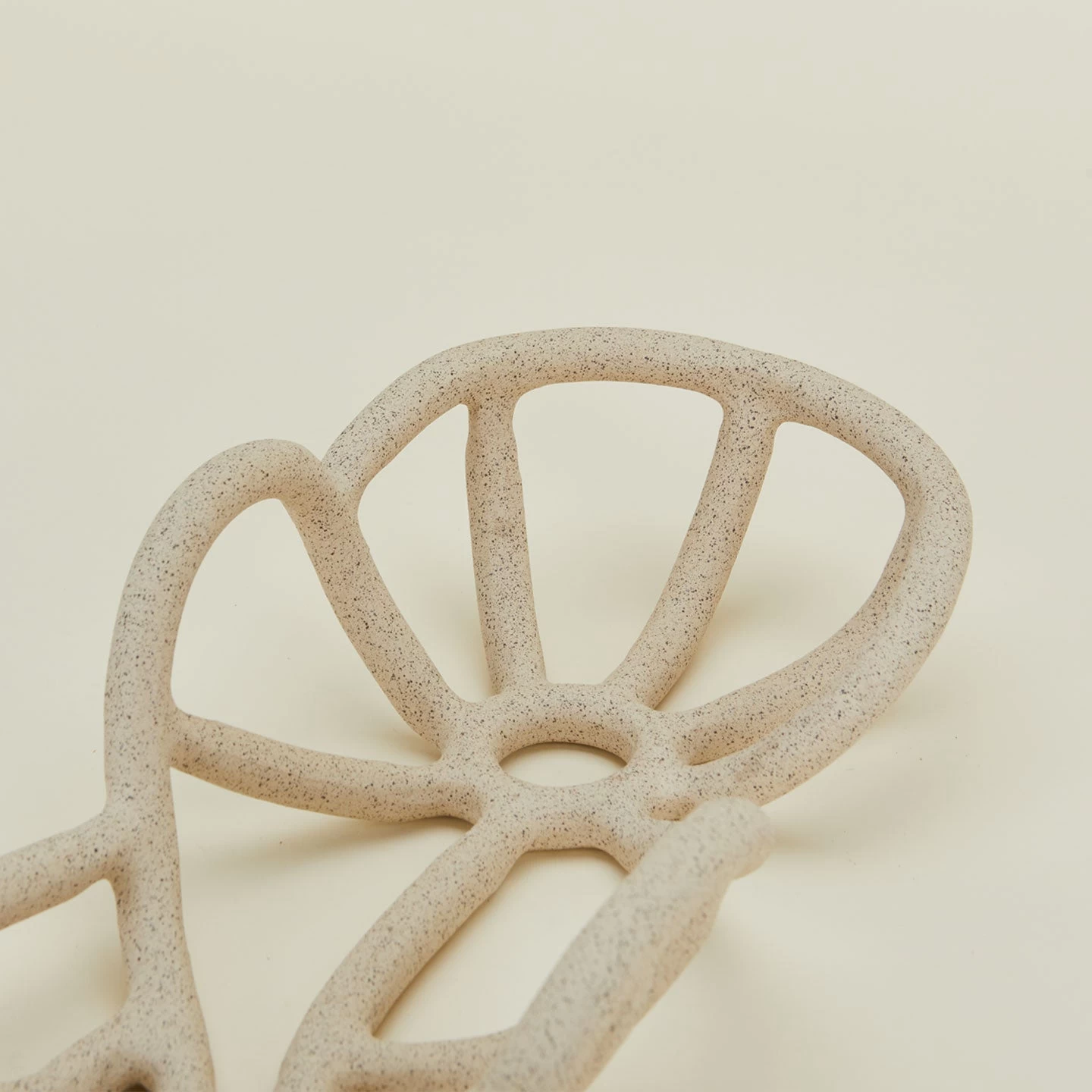 - Organic, fluid form with speckled details are designed to be a sculptural showstopper on any surface